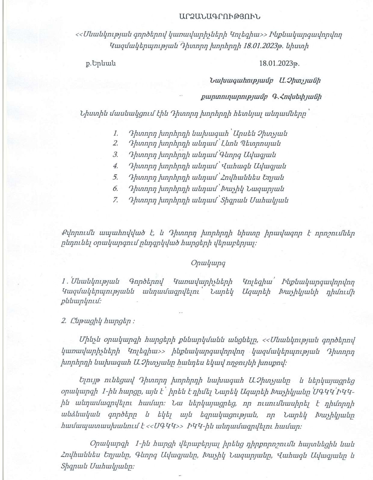 ԴԻՏՈՐԴ ԽՈՐՀՐԴԻ 18.01.2023թ ՆԻՍՏԸ