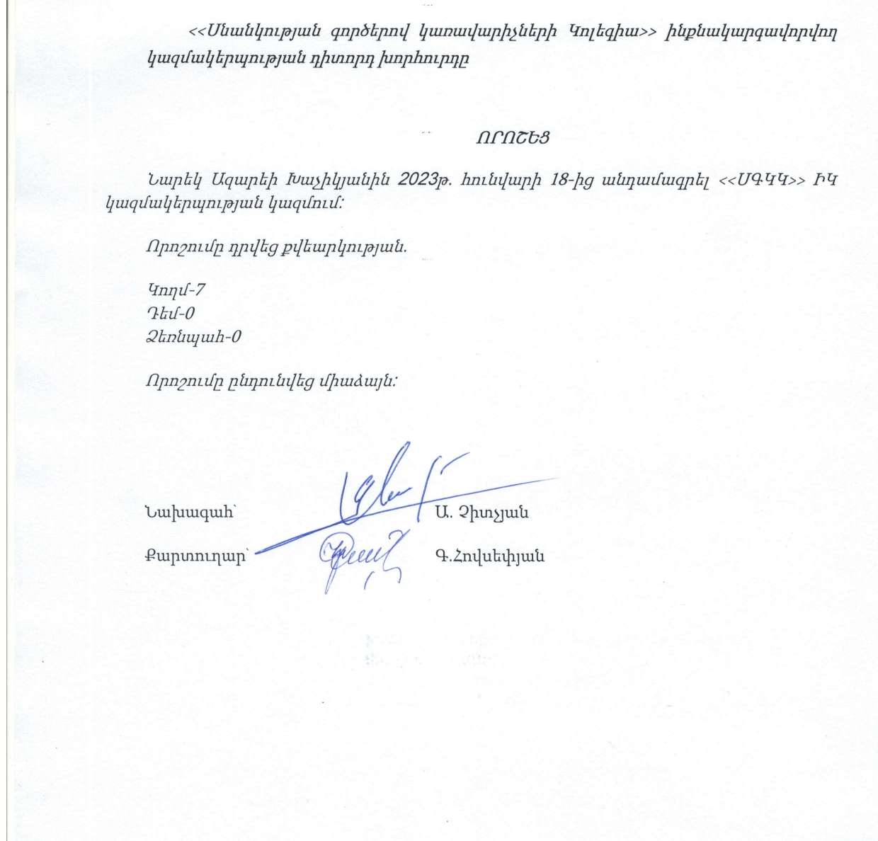 ՍՆԱՆԿՈՒԹՅԱՆ ԳՈՐԾԵՐՈՎ ԿԱՌԱՎԱՐԻՉՆԵՐԻ ԿՈԼԵԳԻԱ